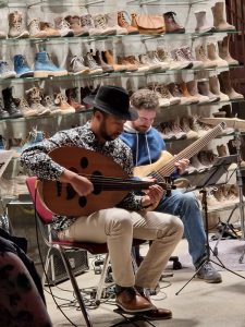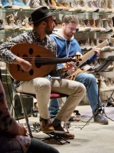 So zieht ein Stück Exotik in die Stadt und wirbelt schwungvoll das Publikum im Schuhregal durcheinander. Besonders Alaa Zouiten fesselt mit seiner Oud und ihren ungewohnten Klängen die Zuhörer.
