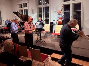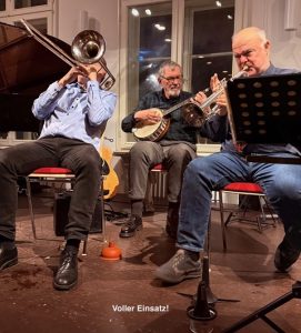 Das Experiment „Blau-Weisse-Burg“ ist gelungen, nach der Zugabe verließ ein zufriedenes Publikum die neuen Räume und wird hoffentlich zum Osterjazz am 20. April 2025 wieder dabei sein.