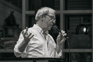 Was die über 100 Gäste in Stübens Schuhregal zu hören bekamen, war eine Einladung zu aktivem Zuhören zu „Interaction“, wie Ken Norris es nannte. Mit jedem Stück arbeiteten sich die drei Musiker nicht nur in die Ohren, sondern vor allem in die Herzen der Zuhörenden hinein.