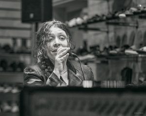 Mit dem Pianisten Stephan Scheja hatte Lafi speziell für den Abend im Schuhregal ein eignenes Programm kreiert. So trafen die französische Eleganz Nadia Lafis auf die jazzige Leichtigkeit und Tiefe des Olsen Scheja Quartetts, welches sich in bemerkenswerter Besetzung auf dieses sensible wie komplexe Projekt einließ: Mit von der Partie waren der neuseeländischen Saxofonisten Nils Olsen, der Saxofonist und Flötist Peter Goden sowie der Kontrabassist Franz Blumenthal, die den perfekten Klangteppich für Lafis fesselnde Stimme boten. Lafi erzählte dem Publikum Geschichten von Liebe, Freiheit, Sehnsucht und Aufbruch – Themen, die zeitlos sind und Generationen bewegen.