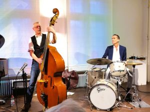 Nach einem konzertanten Einstieg von Kontrabassist Thomas Biller melodiös inszeniert, spielte sich das Trio mit professioneller Leichtigkeit warm. Kai Bussenius am Schlagzeug wusste die Besen so spielerisch und akzentuiert einzusetzen, dass am Ende einer „Up – Tempo“- Nummer nicht die Lautstärke, sondern das Gefühl von Leichtigkeit dominierte.